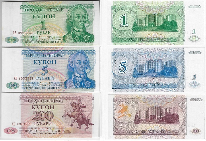 | 78646 | Transnistria, 1, 5 e 200 Rublos, 1993, Pick-16, 17 e 21, todas FE | 24,00 | Foto |