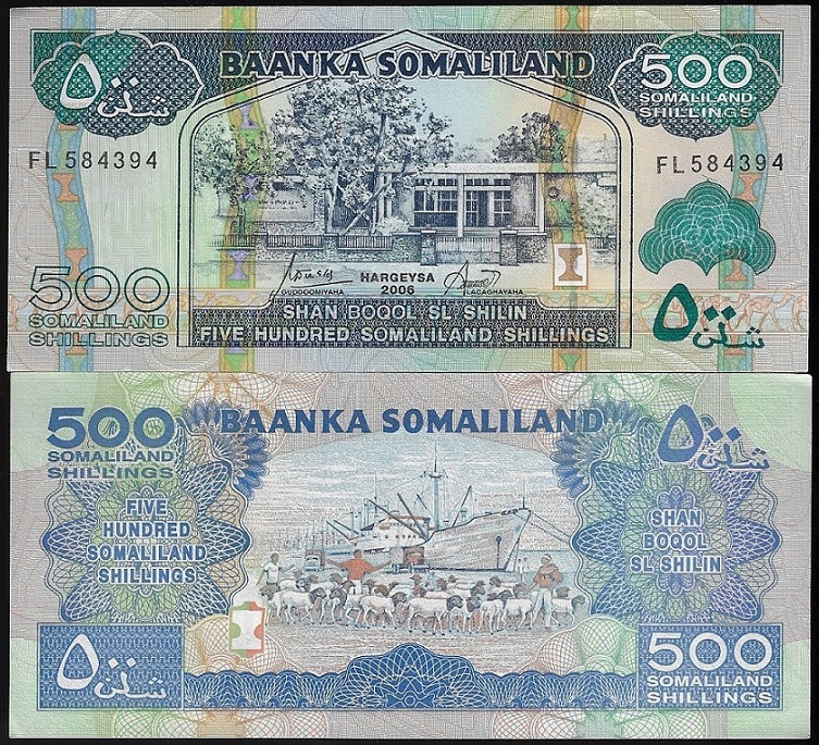 | 79388 | Somaliland, 500 Shillings, 2006, Pick-6f, FE (catálogo US$10) | 40,00 | Foto |