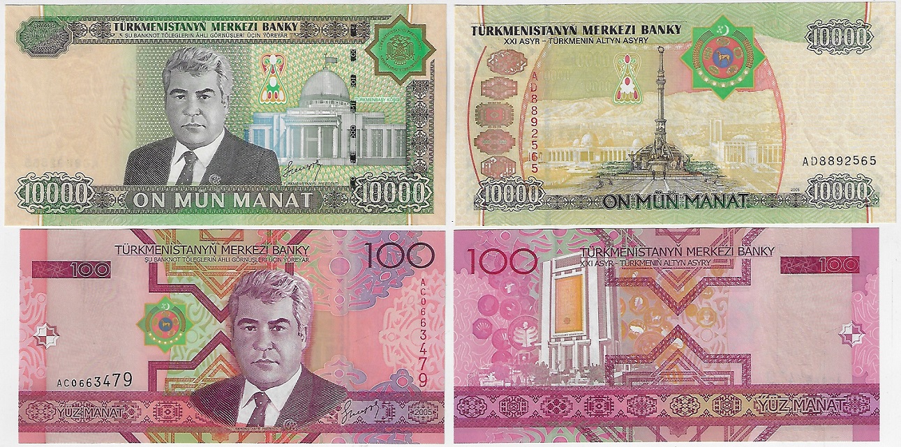 | 79446 | Turcomenistão, 100 e 10.000 Manat, 2005, Pick-18, ambas FE (catálogo US$18) | 72,00 | Foto |