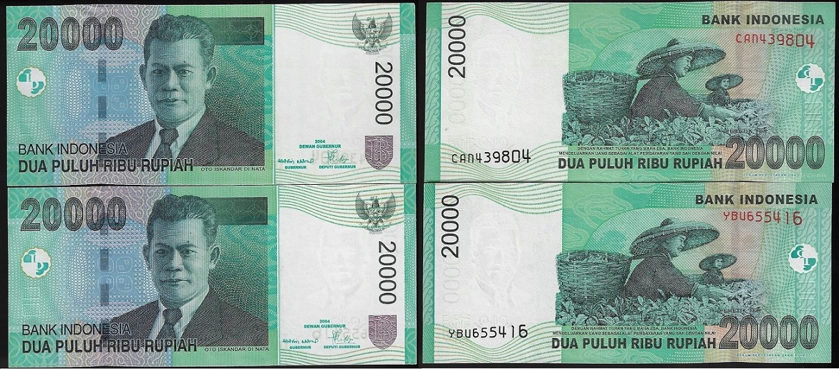 | 79487 | Indonésia, 20.000 Rúpias, 2004/2005 e 2004/2007, Pick-144b e Pick-144d, Colheita do Chá, ambas FE (catálogo US$10,5) | 42,00 | Foto |