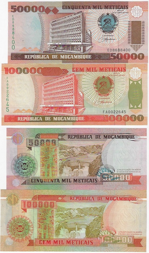 | 79533 | Moçambique, 50.000 e 100.000 Meticais, 1993, Pick-138/139, FE (catálogo US$22) | 88,00 | Foto |