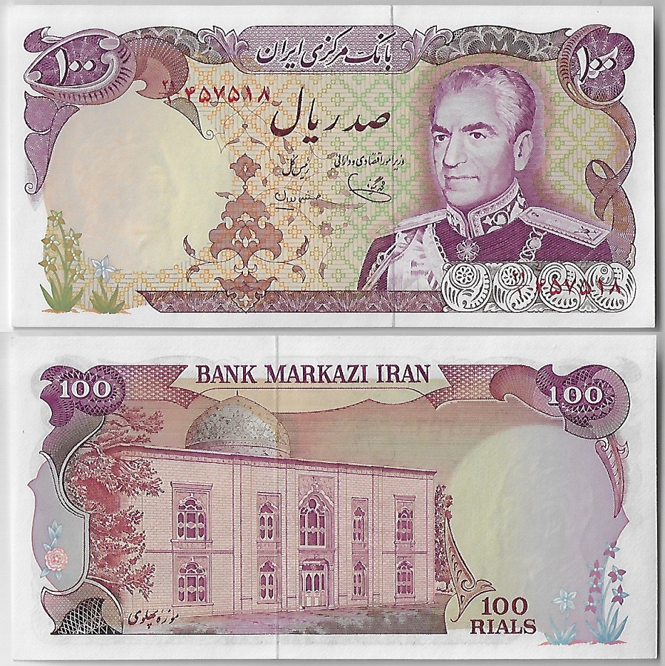 | 79716 | Irã, 100 Rials, 1974/1979, Pick-102c, Shah Mohammad Reza Pahlavi FE (catálogo US$20) | 80,00 | Foto |