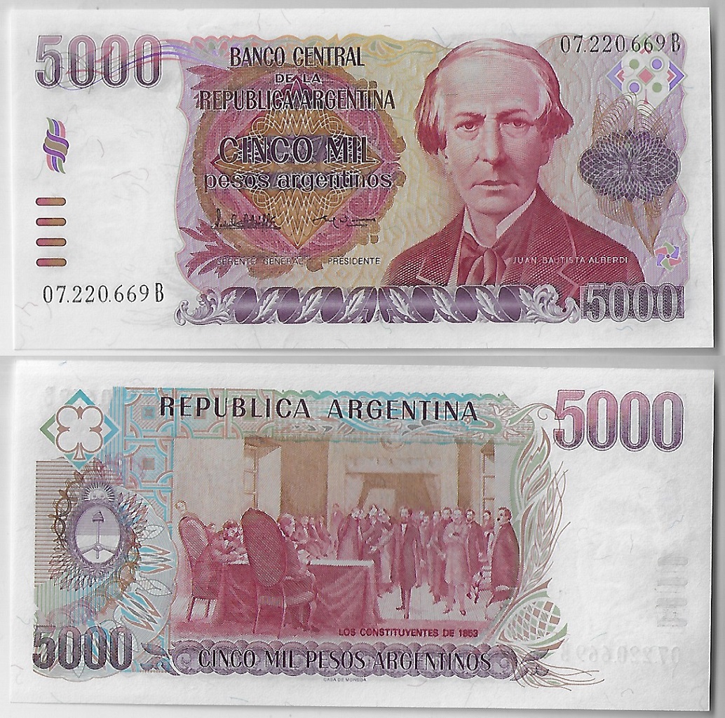 | 79768 | Argentina, 5.000 Pesos, 1984/1985, Pick-318, FE (catálogo US$10) | 40,00 | Foto |