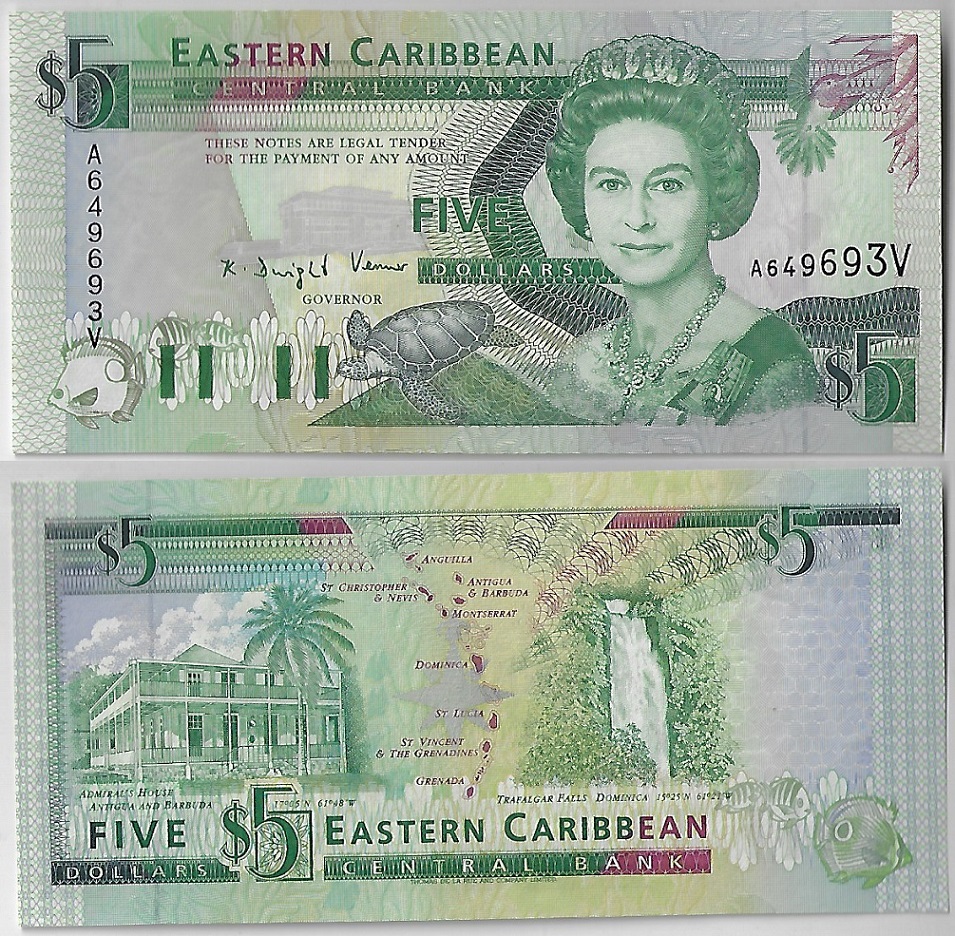 | 79773 | Estados do Caribe Oriental / São Vicente, 5 Dólares, 1993, Pick-26v, Rainha Elizabeth II, FE (catálogo US$60) | 240,00 | Foto |
