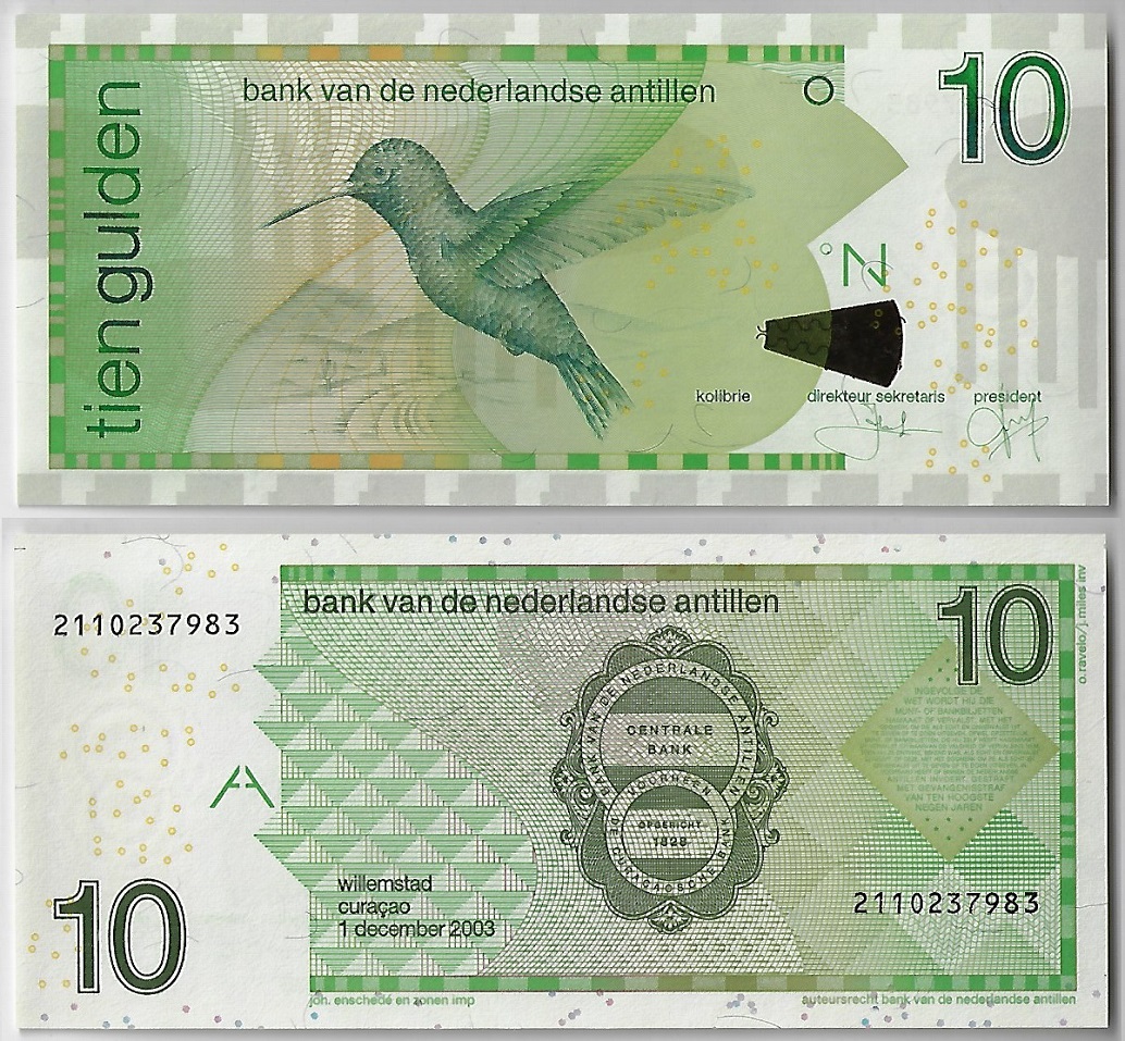 | 80128 | Antilhas Holandesas, 10 Gulden, 2006, Pick-28c, ave Beija-Flor, FE (catálogo US$45) | 180,00 | Foto |