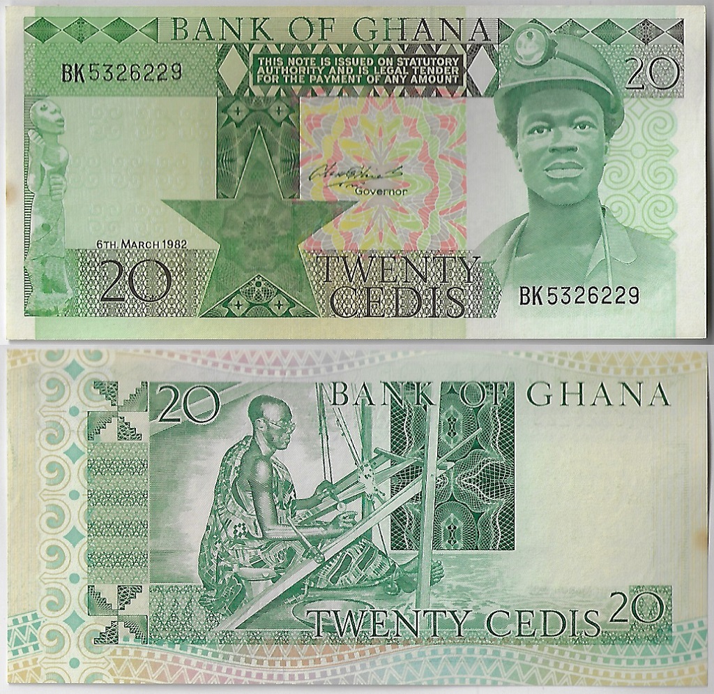 | 81763 | Gana, 20 Cedis, 1982, Pick-21c, FE com ponto amarelado (catálogo US$25) | 100,00 | Foto |