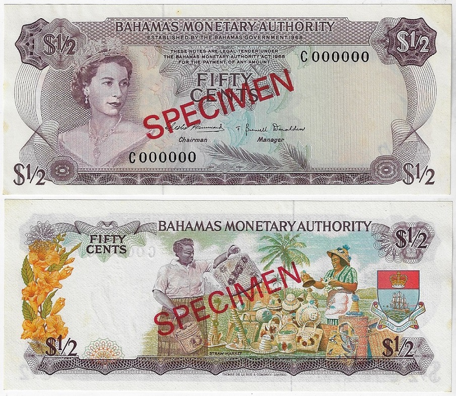| 81815 | Bahamas, ½ Dólar, 1968, Pick-26s, Specimen, Rainha Elizabeth II, FE (catálogo US$120) | 480,00 | Foto |