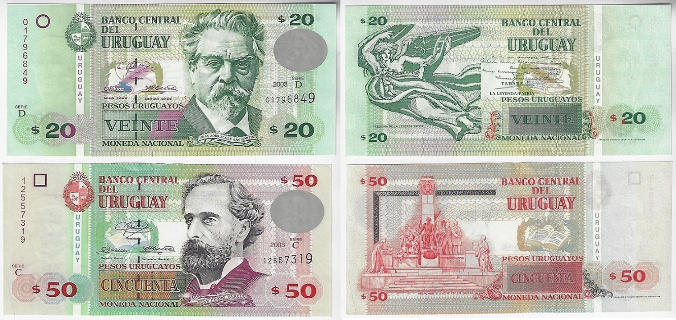| 81875 | Uruguai, 20 e 50 Pesos, 2003, Pick-83A e 84, ambas FE (catálogo US$14,5) | 58,00 | Foto |