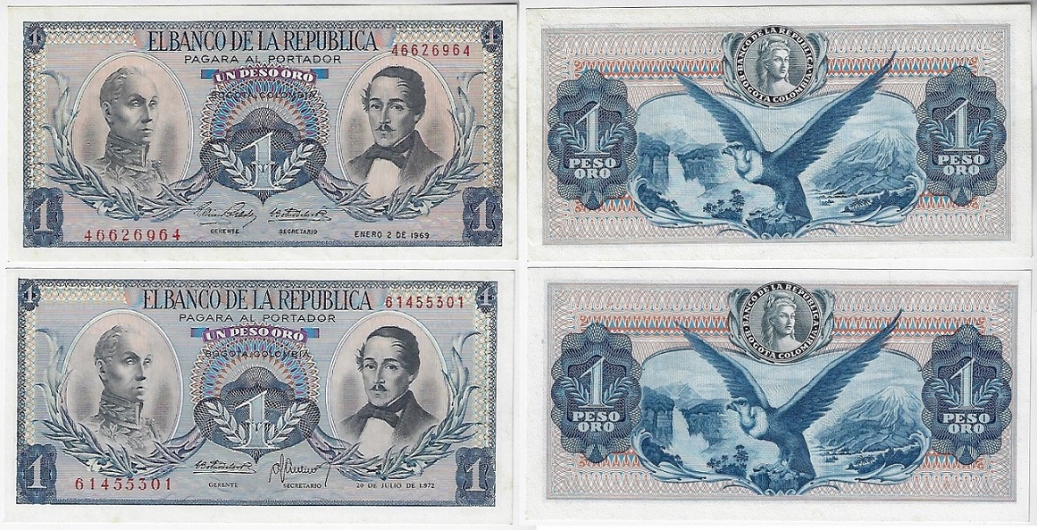 | 81894 | Colômbia, 1 Peso Oro, 1969 e 1972, Pick-404d e 404e, ambas FE (catálogo US$10) | 40,00 | Foto |