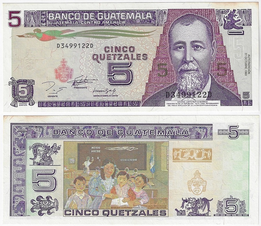 | 81949 | Guatemala, 5 Quetzales, 1993, Pick-88, FE com leves pontos amarelados (catálogo US$7,5) | 30,00 | Foto |