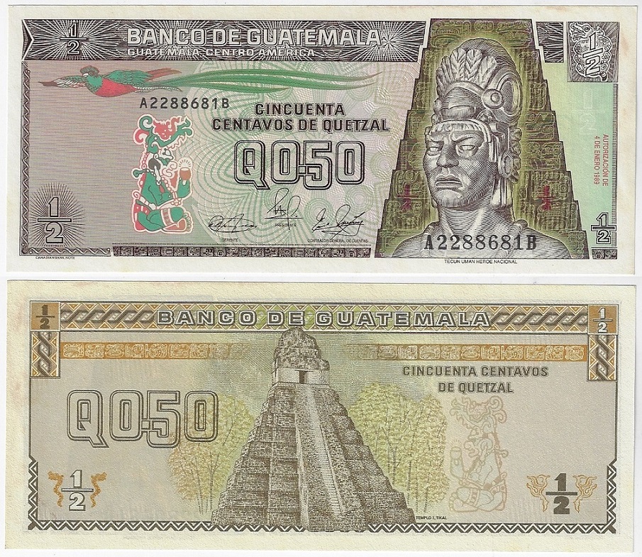 | 81953 | Guatemala, ½ Quetzales, 1989, Pick-72a, FE (catálogo US$6) | 16,00 | Foto |
