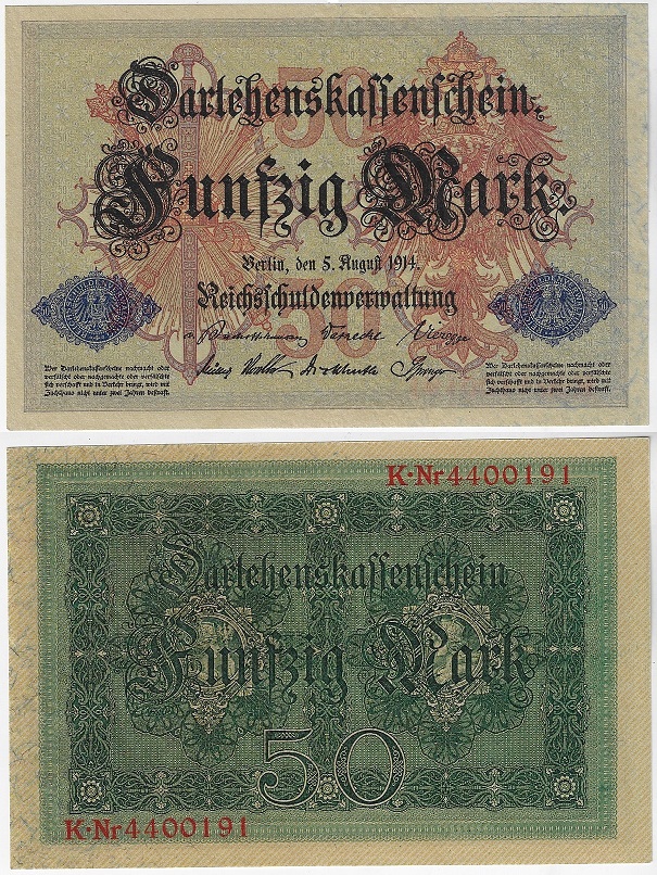 | 82027 | Alemanha, 50 Marcos, 1914, Pick-49b, FE (catálogo US$30) | 120,00 | Foto |
