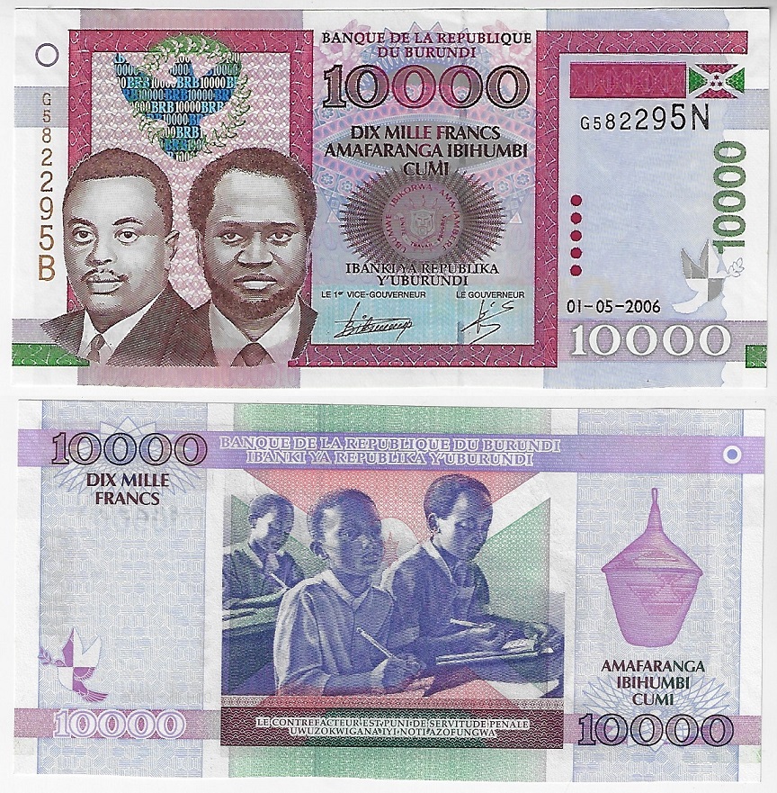 | 82065 | Burundi, 10.000 Francos, 2006, Pick-43b, FE (catálogo US$60) | 240,00 | Foto |