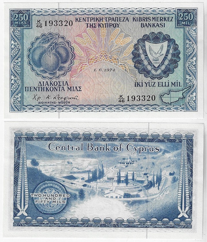 | 82199 | Chipre, 250 Mil, 1974, Pick-41b, FE (catálogo US$130) | 520,00 | Foto |