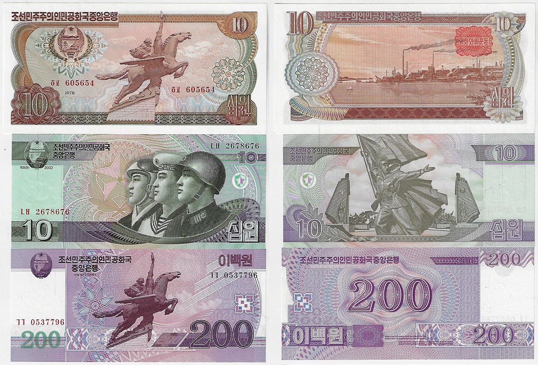 | 82242 | Coréia do Norte, 10 e 200 Won, 1978, 2002 e 2009, Pick-20c, 59 e 62, todas FE (catálogo US$14,25) | 20,00 | Foto |