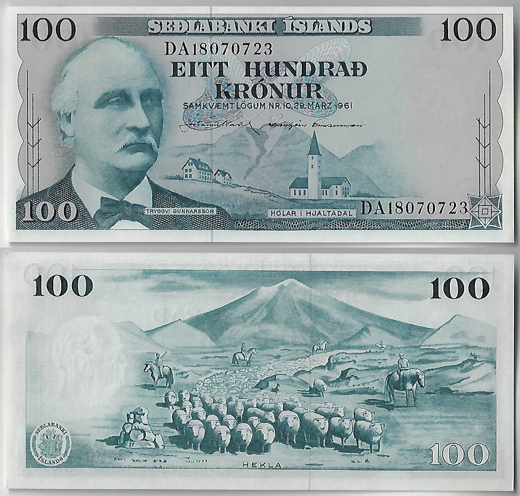 | 82256 | Islândia, 100 Kronur, 1961, Pick-44, Pecuária junto ao Vulcão Hekla, FE (catálogo US$20) | 80,00 | Foto |