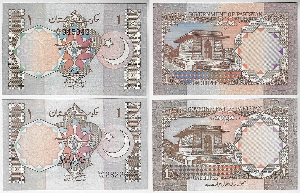 | 82301 | Paquistão, 1 Rúpia, 1981/..., Pick-25 (FE com furo de grampeador junto a borda esquerda, o que é padrão desta emissão) e 27i (FE) | 22,00 | Foto |