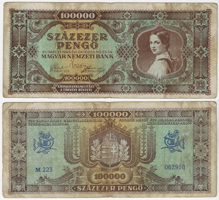 | 82575 | Hungria, 100.000 Pengo, 1945, Pick-120a, MBC (catálogo US$25) | 100,00 | Foto |