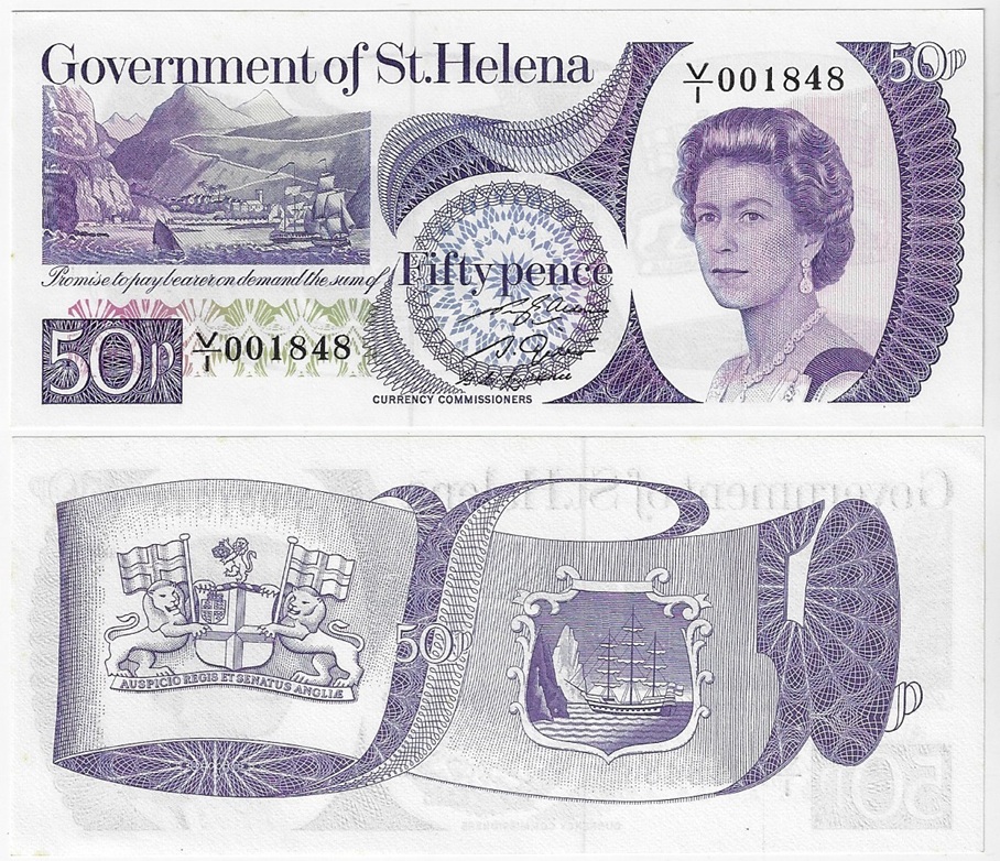 | 82703 | Santa Helena, 50 Pence, 1979, Pick-5, Rainha Elizabeth II, FE (catálogo US$60) | 240,00 | Foto |