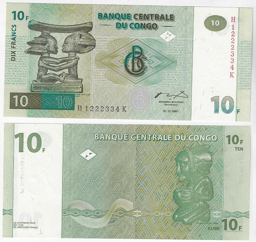 | 83016 | Congo, 10 Francos, 1997, Pick-87B, FE (catálogo US$15) | 30,00 | Foto |
