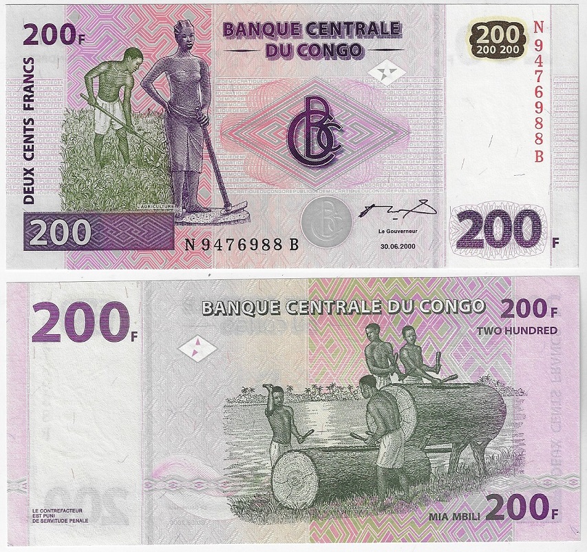 | 83017 | Congo, 200 Francos, 2000, Pick-95, G&D, FE (catálogo US$6) | 17,00 | Foto |