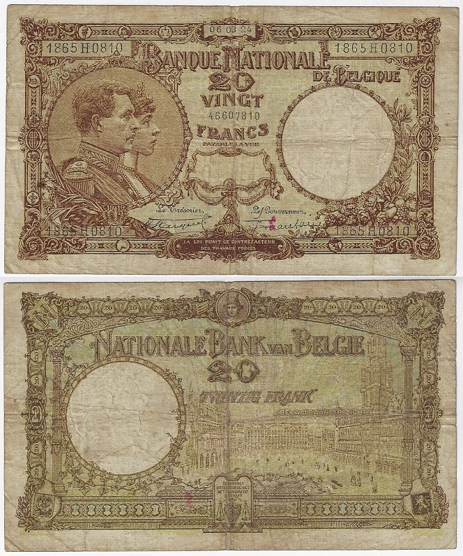 | 83020 | Bélgica, 20 Francos, 1924, Pick-94, MBC (catálogo US$90) | 360,00 | Foto |