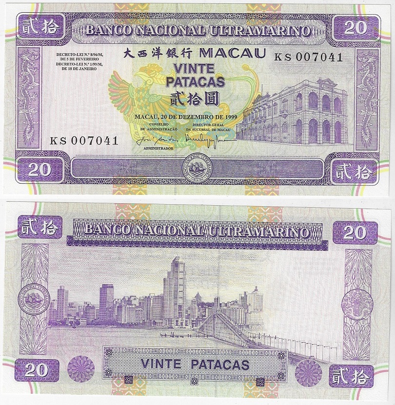 | 83058 | Macau, 20 Patacas, 1999, Pick-71, FE (catálogo US$25) | 62,00 | Foto |