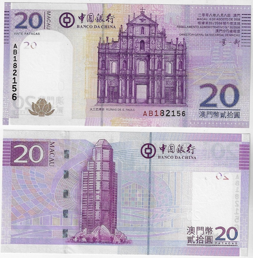 | 83060 | Macau, 20 Patacas, 2008, Pick-109, FE (catálogo US$17,5) | 39,00 | Foto |