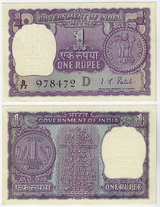 | 83085 | Índia, 1 Rúpia, 1971, Pick-77i, FE com furo de grampeador junto a borda esquerda (o que é padrão desta emissão) (catálogo US$7) | 28,00 | Foto |