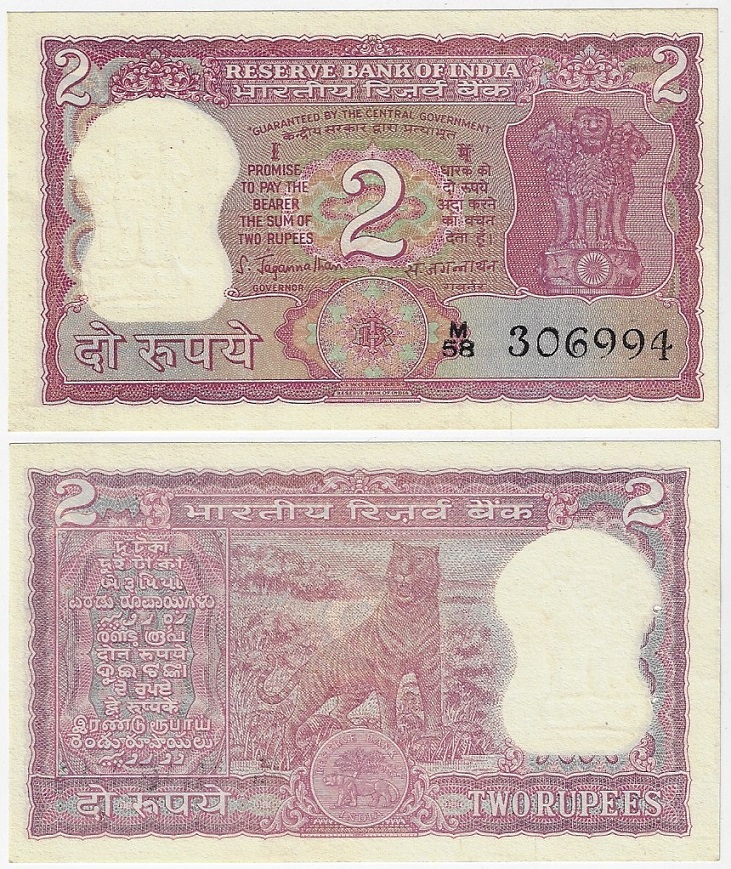 | 83087 | Índia, 2 Rúpias, 1970s, Pick-52, FE com furo de grampeador junto a borda esquerda (o que é padrão desta emissão) (catálogo US$8) | 32,00 | Foto |