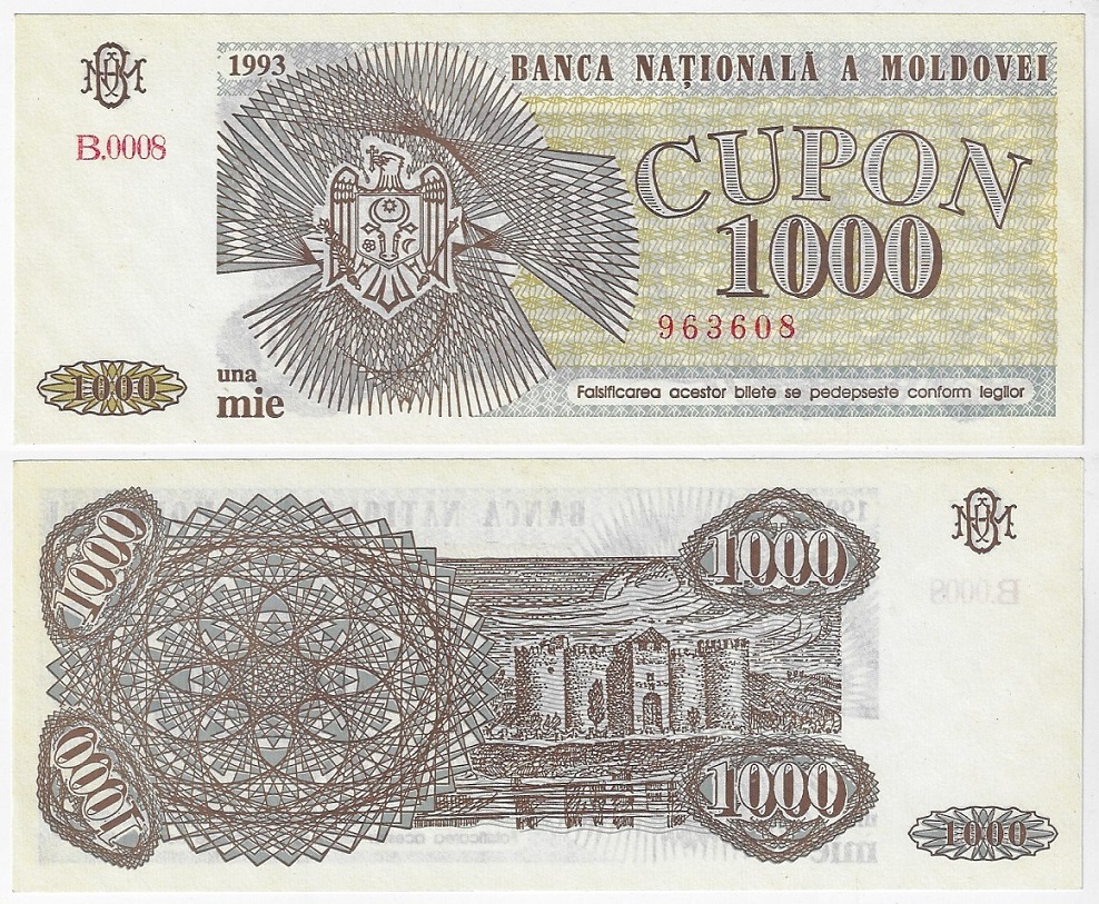 | 83143 | Moldávia, 1.000 Cupon, 1993, Pick-3, FE (catálogo US$10) | 35,00 | Foto |