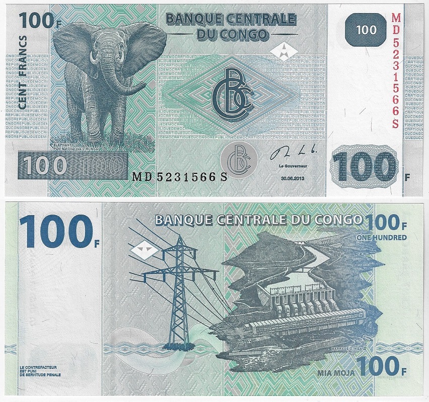 | 83314 | Congo, 100 Francos, 2013, Pick-98b, Elefante, FE | 14,00 | Foto |