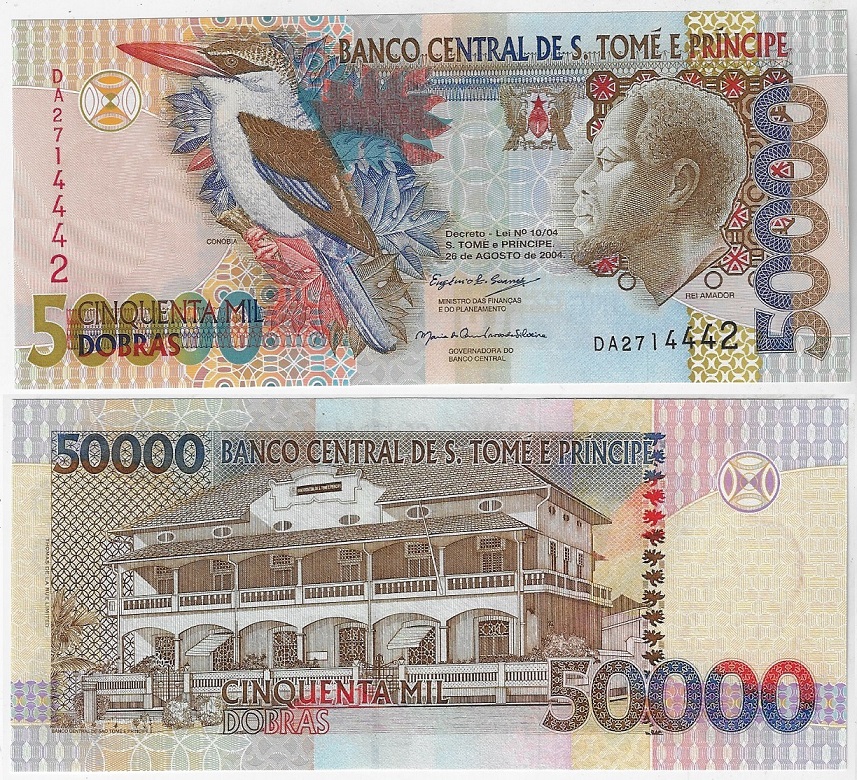 | 83833 | São Tomé e Príncipe, 50.000 Dobras, 2004, Pick-68b, Ave, FE (catálogo US$50) | 200,00 | Foto |