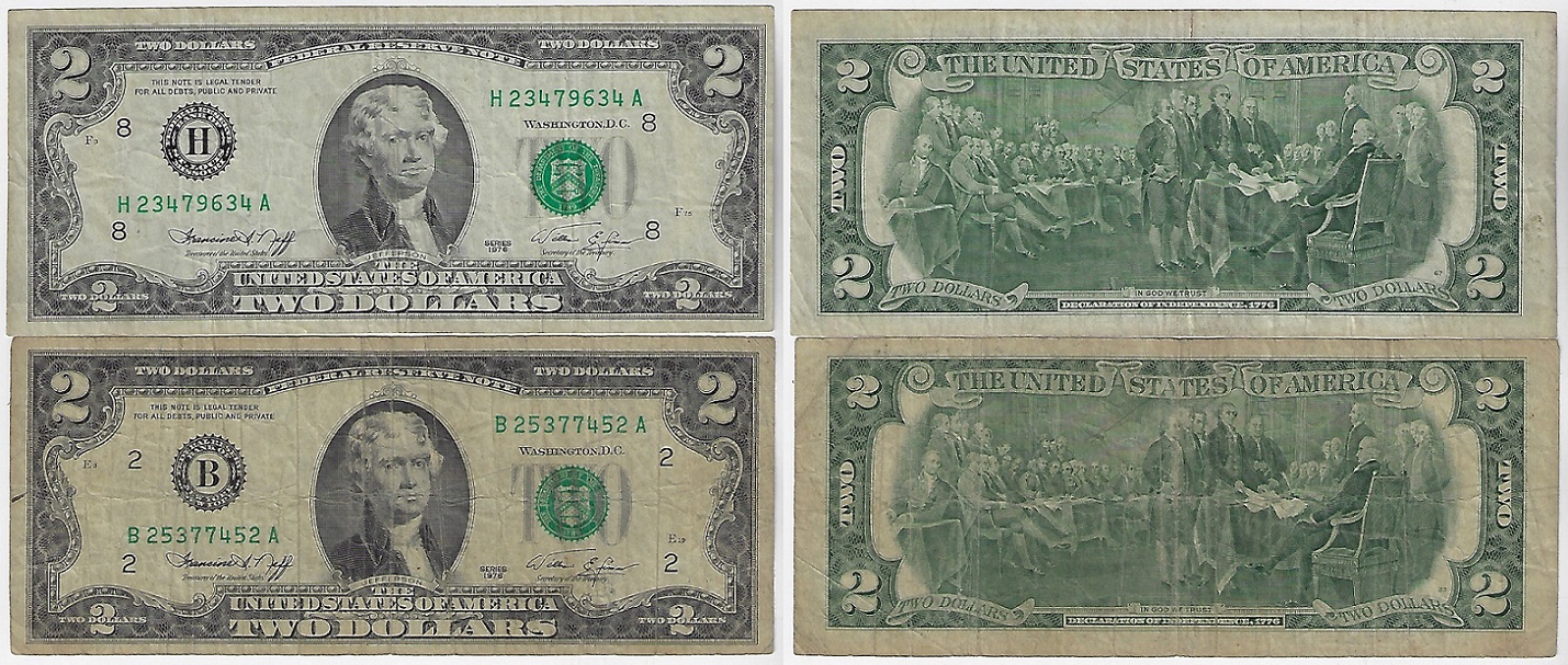 | 84009 | EUA, 2 Dólares, 1976, 2 cédulas, Pick-461, MBC e MBC- | 35,00 | Foto |