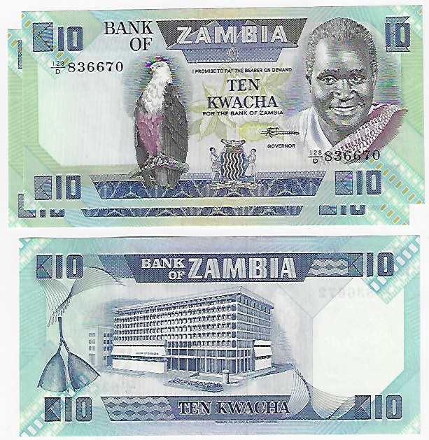 | 44787 | Zâmbia, 10 Kwacha, 1986/1988, Pick-26e, 3 cédulas, FE | 30,00 | Foto |