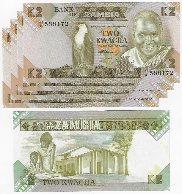 | 54109 | Zâmbia, 2 Kwacha, 1980/1988, Pick-24c, 5 cédulas, FE (catálogo US$35) | 53,00 | Foto |