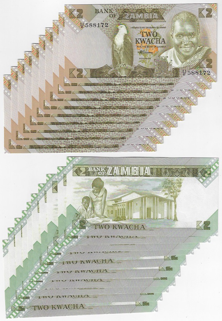 | 54111 | Zâmbia, 2 Kwacha, 1980/1988, Pick-24c, 10 cédulas, FE (catálogo US$70) | 120,00 | Foto |