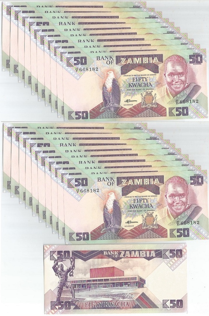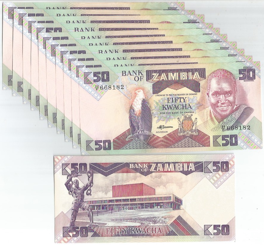 | 60083 | Zâmbia, 50 Kwacha, 1986/1988, Pick-28A, 10 cédulas, FE | 120,00 | Foto |
