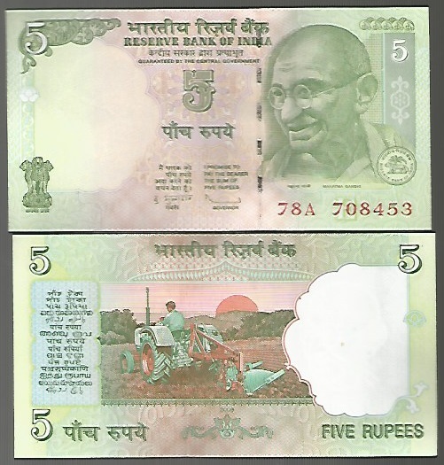 | 75994 | Índia, 5 Rúpias, 2009, Pick-94A, 5 cédulas, FE | 30,00 | Foto |