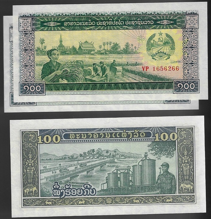 | 76293 | Laos, 100 Kip, 1979, Pick-30, 3 cédulas, FE | 18,00 | Foto |