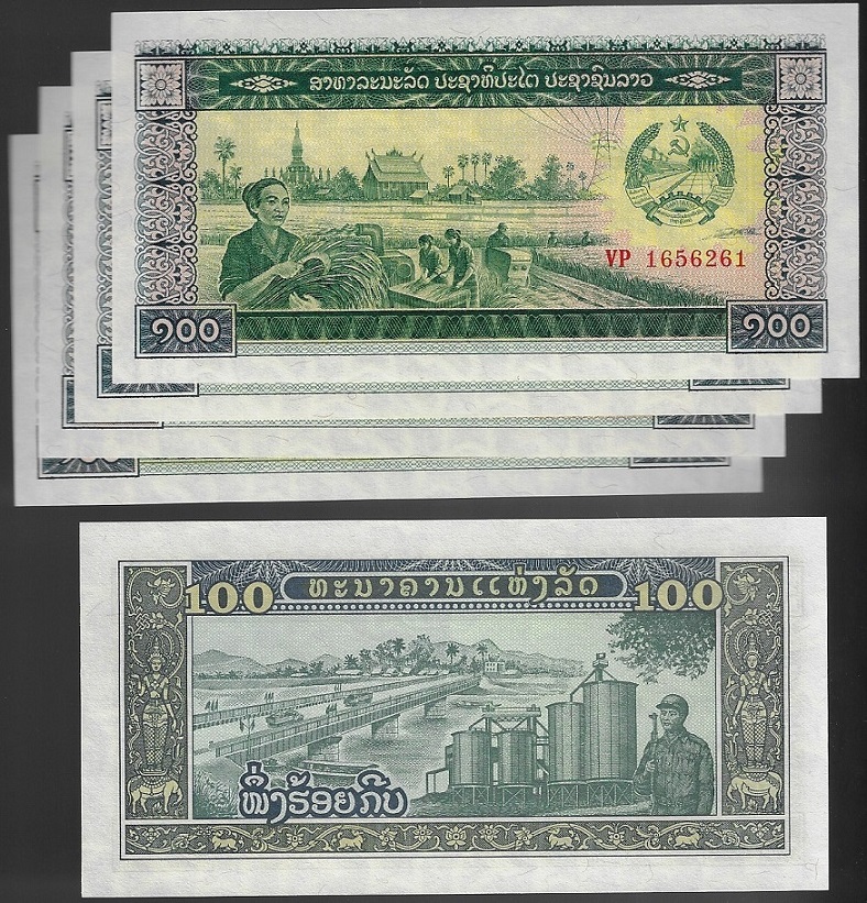 | 76294 | Laos, 100 Kip, 1979, Pick-30, 5 cédulas, FE | 24,00 | Foto |