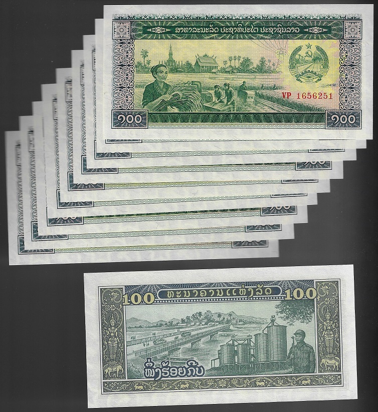 | 76295 | Laos, 100 Kip, 1979, Pick-30, 10 cédulas, FE | 41,00 | Foto |