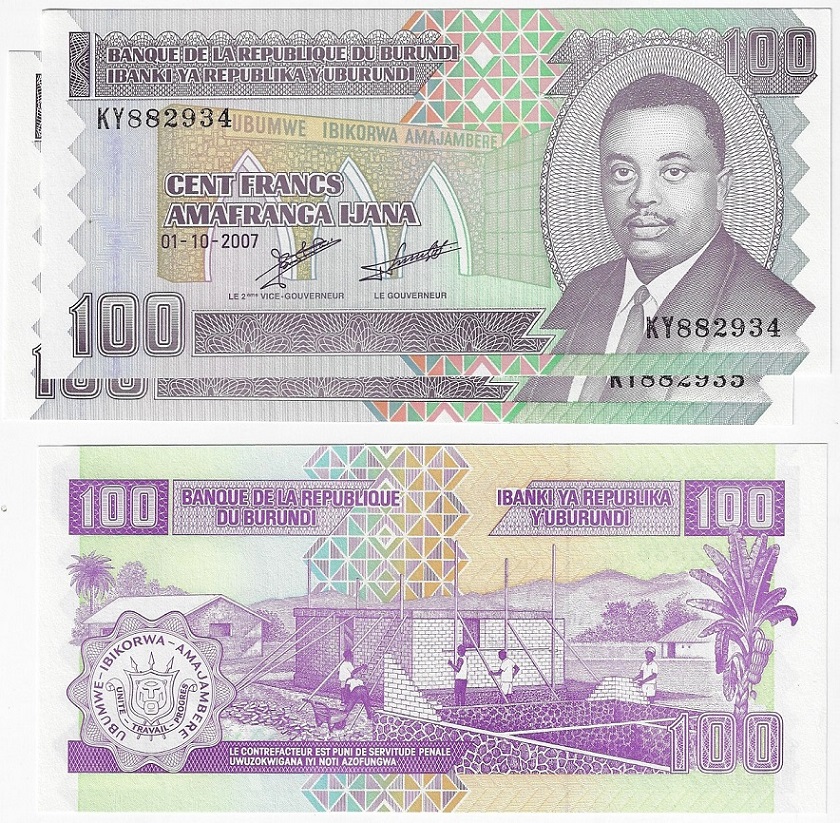 | 79395 | Burundi, 100 Francos, 2007, Pick-37f, 3 cédulas, FE (catálogo US$9) | 17,00 | Foto |