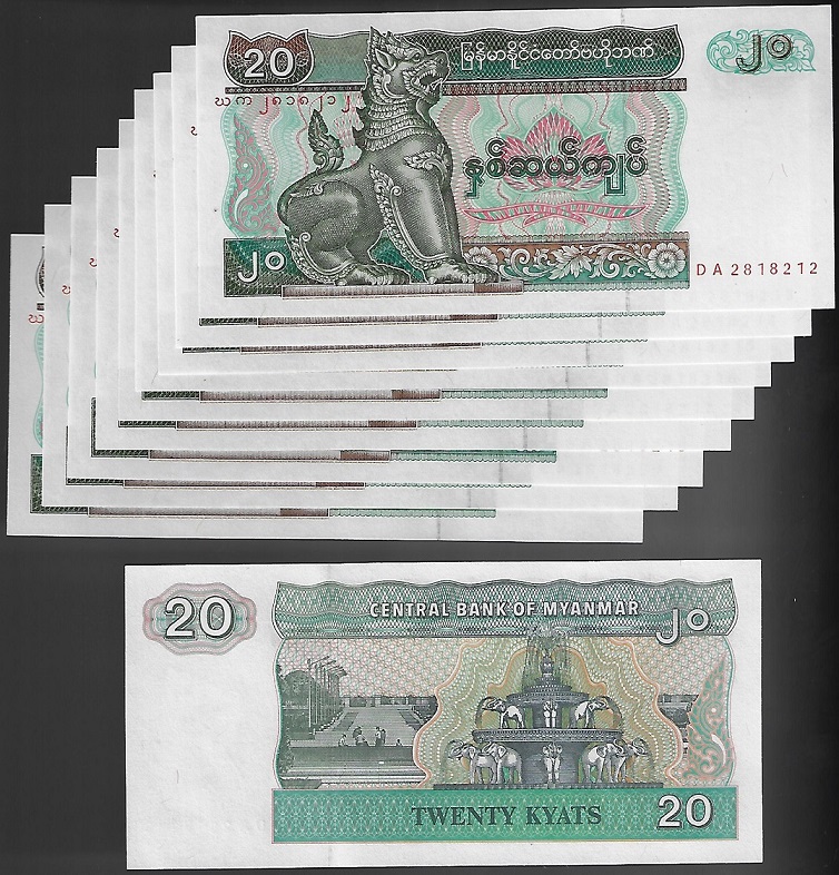 | 79497 | Myanmar, 20 Kyats, 1994, Pick-72, 10 cédulas, FE (catálogo US$10) | 21,00 | Foto |