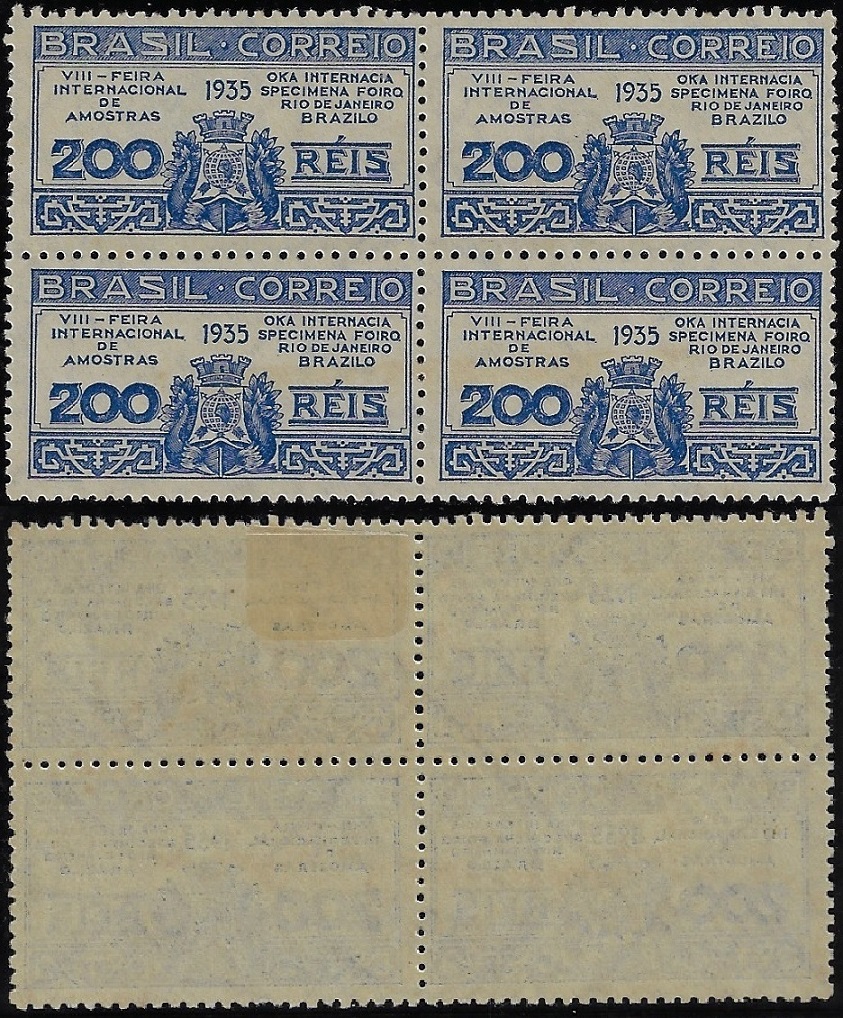 | 28225 | 99, 8ª Feira Internacional de Amostras, 1935, quadra, novo com goma e marca de charneira (30 UF) | 30,00 | Foto |