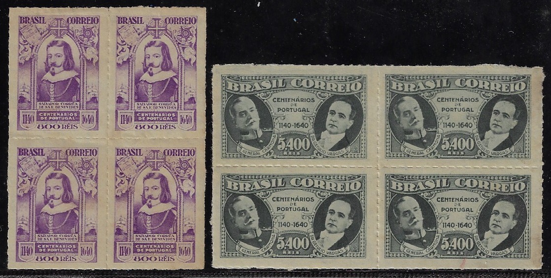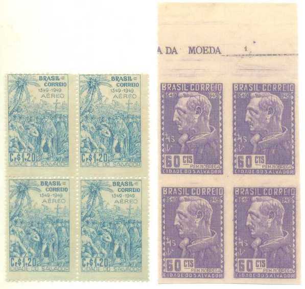 | 54083 | 245 e A-72, 4º Centenário da Fundação de Salvador, quadras, novos respectivamente sem goma e com goma amarelada (4,8 UF) | 9,00 | Foto |