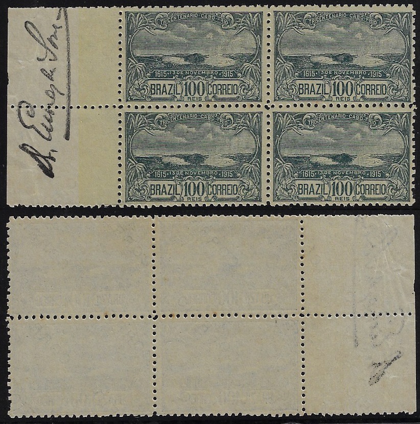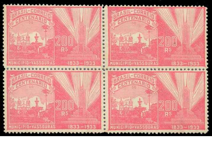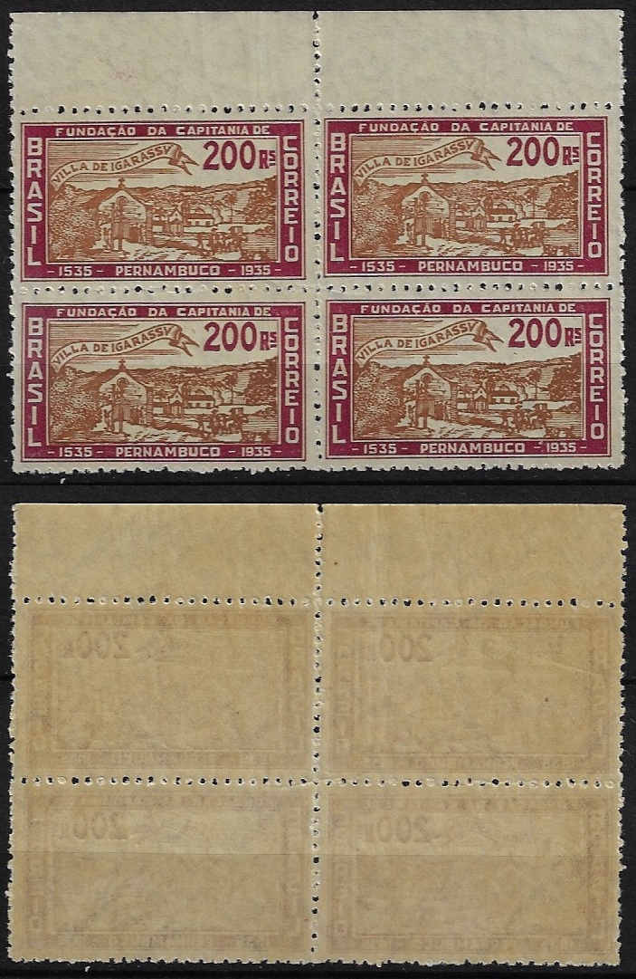 | 78621 | 86, 4º Centenário da Capitania de Pernambuco, 200 Réis, Vila de Igarassu, quadra com margem de folha, mint (catálogo 50 UF) | 50,00 | Foto |