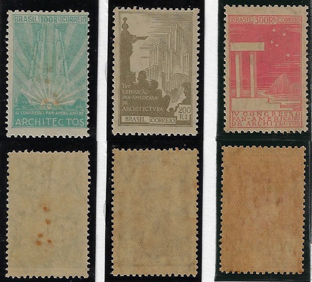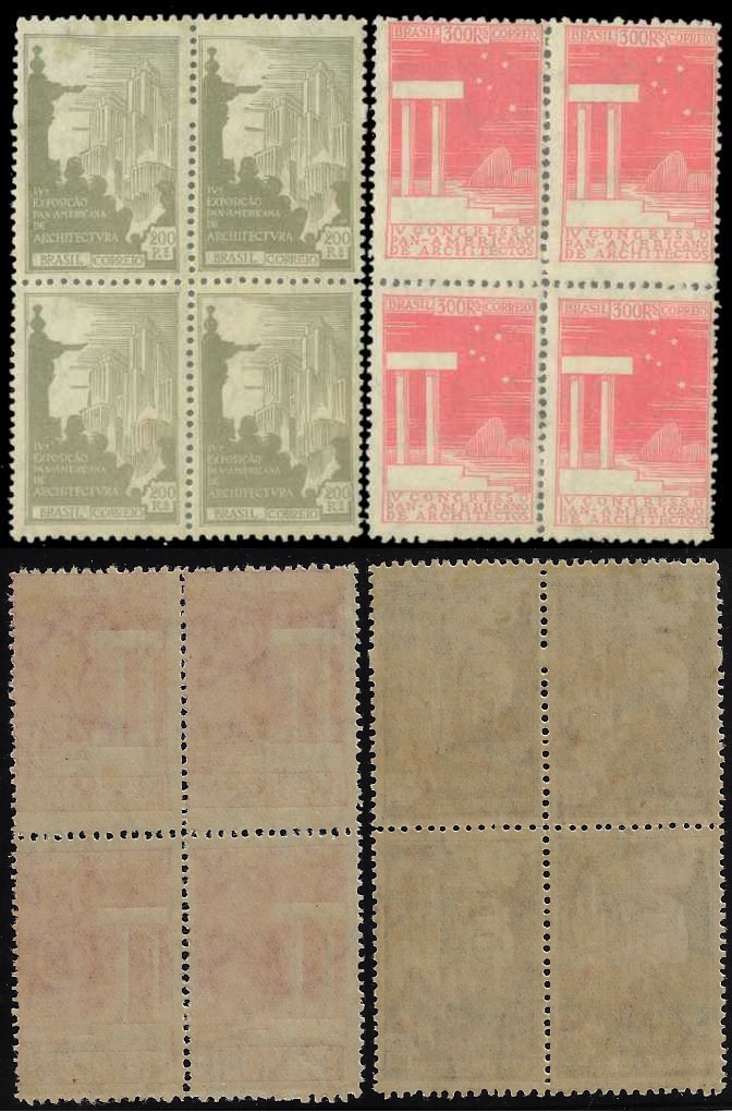 | 53951 | 25/26, 4º Congresso de Arquitetura e 4ª Exposição Panamericana de Arquitetura, quadras, novo com goma amarelada (catálogo 130 UF) | 130,00 | Foto |