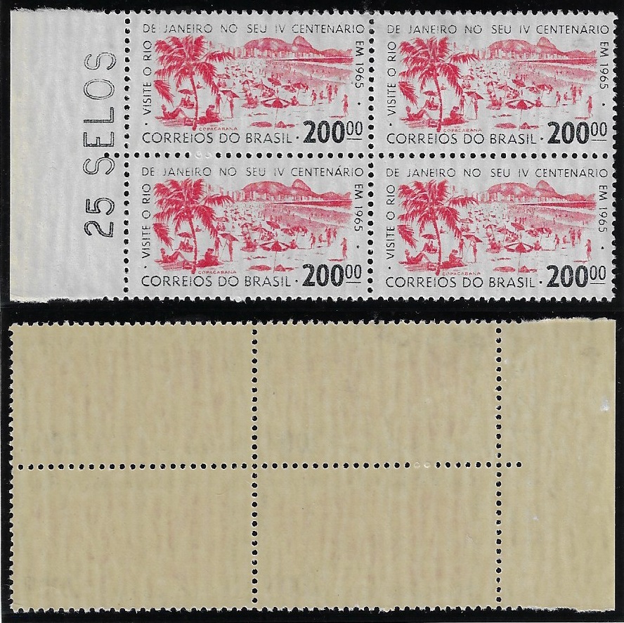 | 53958 | 517y, Propaganda do 4º Centenário da cidade do Rio de Janeiro - Copacabana, quadra com papel marmorizado, novo com goma (120 UF) | 120,00 | Foto |