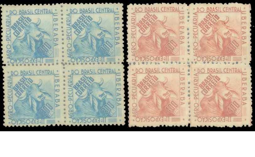 | 53967 | 171/172, 2ª Exposição Agropecuária do Brasil - Uberaba, quadras, novo com goma amarelada e marca de charneira (8 UF) | 10,00 | Foto |